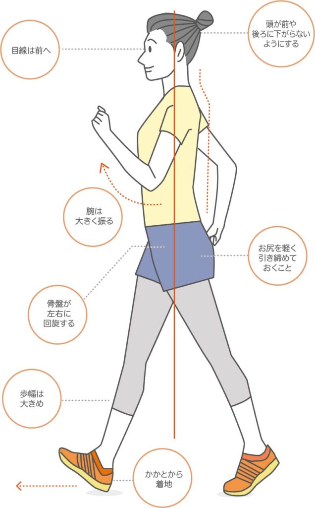 ウォーキングの効果を高めるためには、姿勢と歩き方を意識することが大切です。