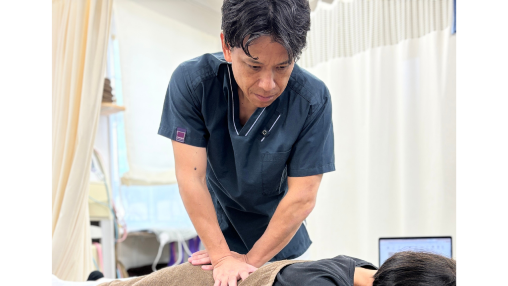 大津市の梅田整骨院では、姿勢や筋肉の状態を確認しながら、体のバランスを整える施術を行っています。